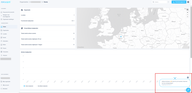 - Please try our chatbot Evi first. You can find it by logging in on the Maxem Energy Cloud: cloud.maxem.energy. The chatbot is in the lower right corner of the webpage. If the chatbot cannot solve the problem you can ask Evi you want to speak a support colleague and it will create a supportticket for you.