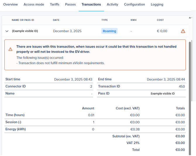 - The charging session duration must be longer than 2 minutes OR the volume must be higher than 0.2 kWh.