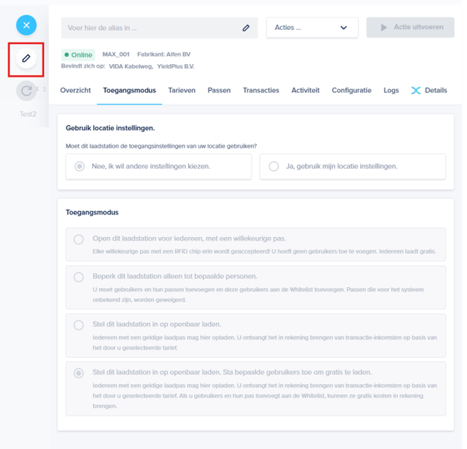 - Onder ‘Rol’ kan je zien welke rechten je hebt. Een Admin heeft alle rechten binnen de organisatie, behalve laadpalen toevoegen. Heb je een andere rol, bijvoorbeeld ‘Technical’, dan heb je niet alle rechten. Vraag je beheerder (je installateur of werkgever) of zij je verder kunnen helpen met het aanpassen van een instelling of om laadpalen toe te voegen.