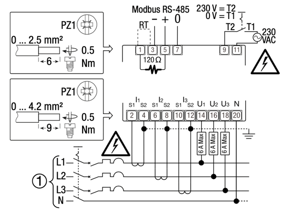 Bedrading kWh-meter (Ter verduidelijking, niet voor configuratie)