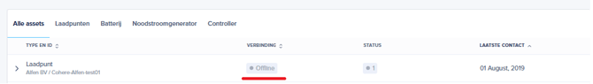 - Klik onder 'Assets' op het laadstation dat offline lijkt te zijn.