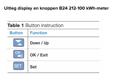 Houd OK 2s → terug naar de standaard kWh-weergave.