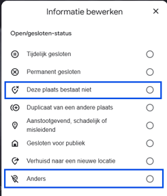 - Kies vervolgens ‘Plaats is gesloten of is niet hier’.