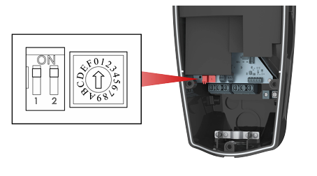 Op de volgende afbeelding zie je waar deze draaischakelaar zit binnenin de laadpaal.